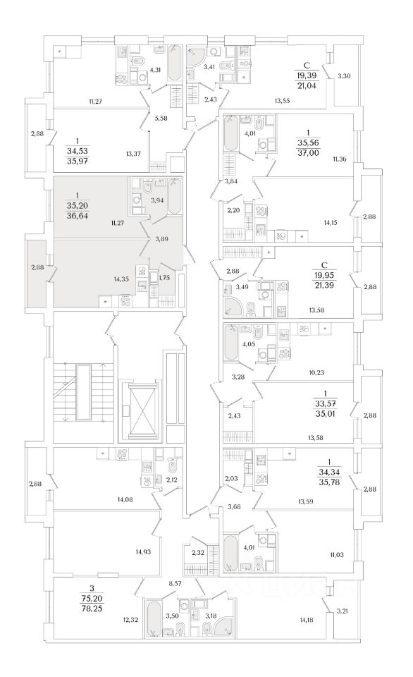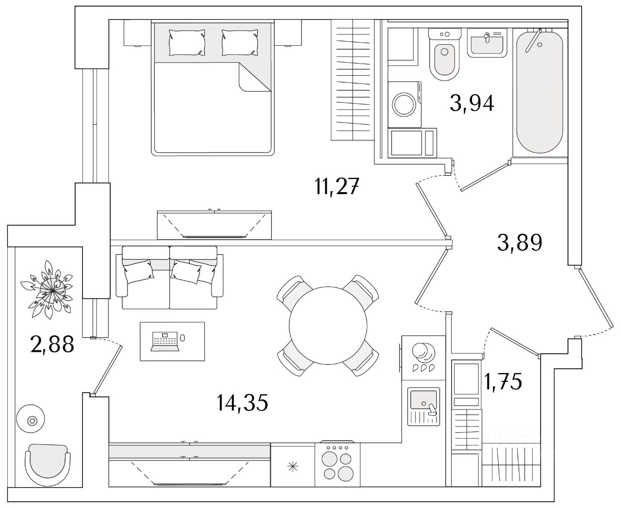 Квартира находится в 9 этажном доме, в Очередь 2, Корпус 2 на 7 этаже. Общая площадь квартиры 36,64 кв.м.