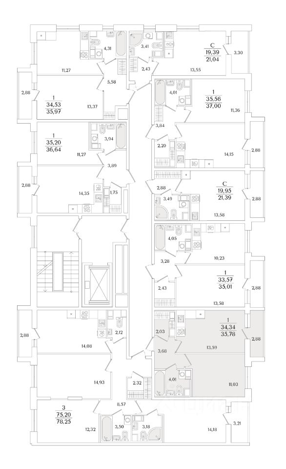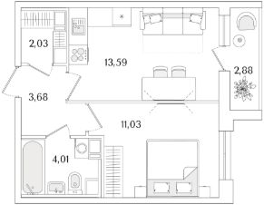 Квартира находится в 9 этажном доме, в Очередь 2, Корпус 2 на 7 этаже. Общая площадь квартиры 35,78 кв.м.