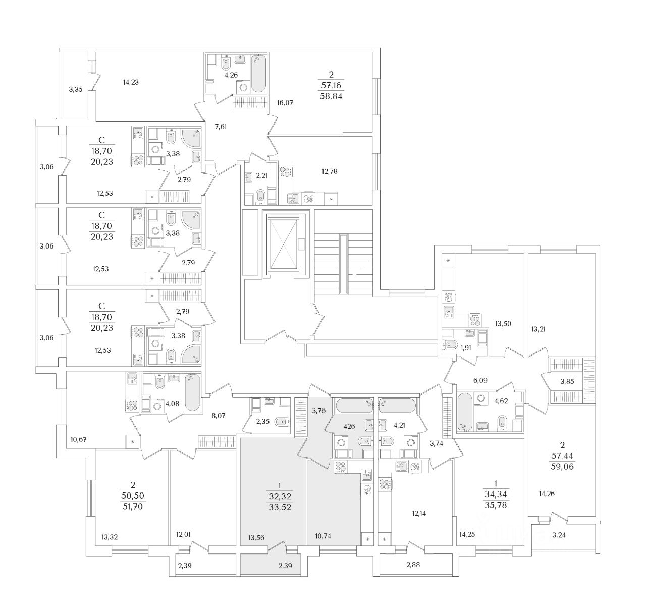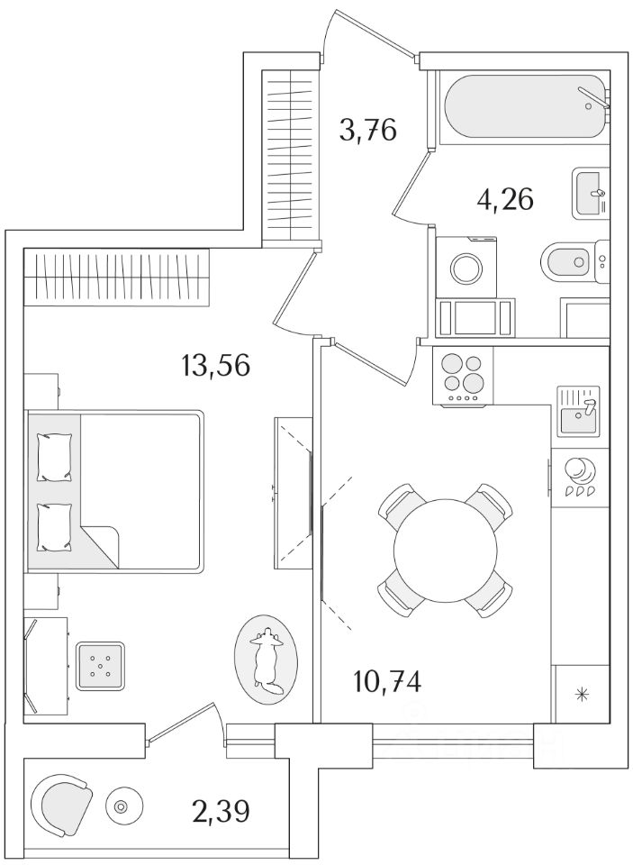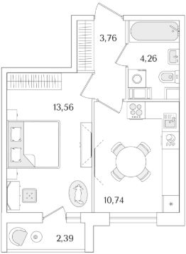 Квартира находится в 9 этажном доме, в Очередь 2, Корпус 2 на 7 этаже. Общая площадь квартиры 33,52 кв.м.