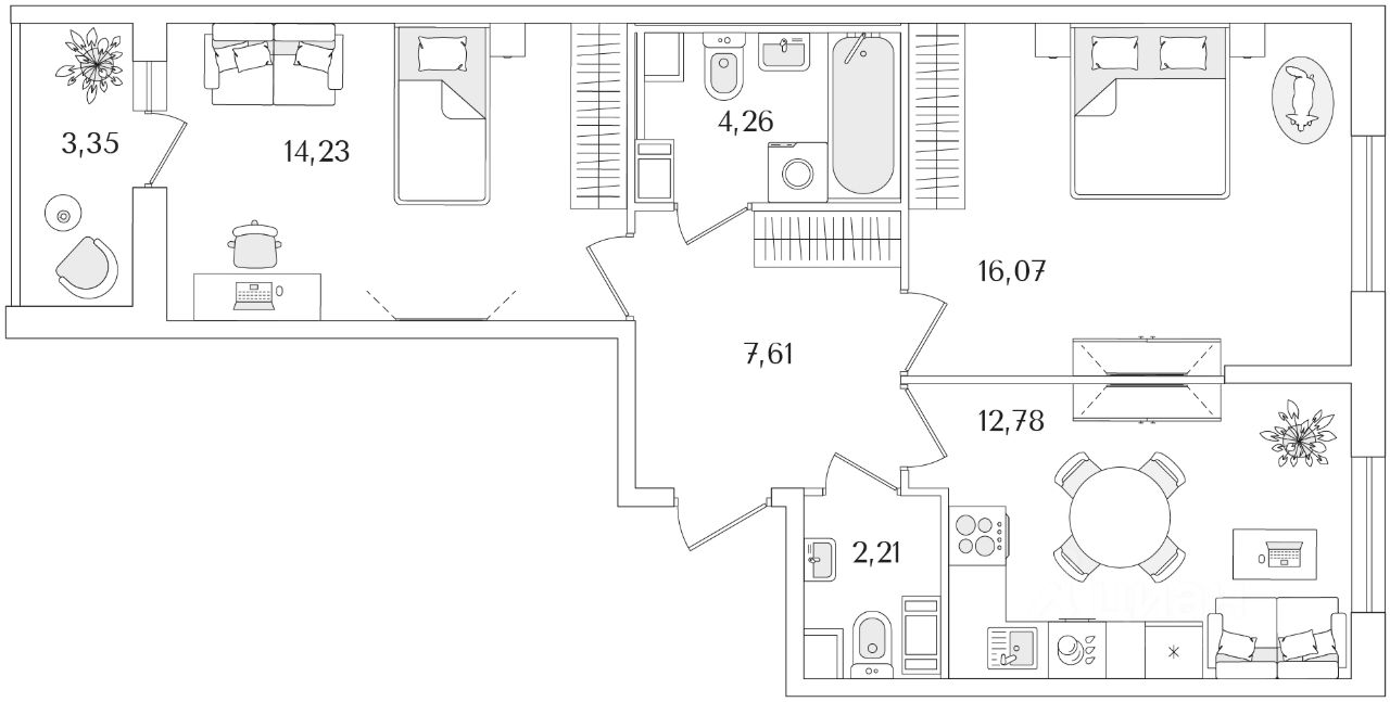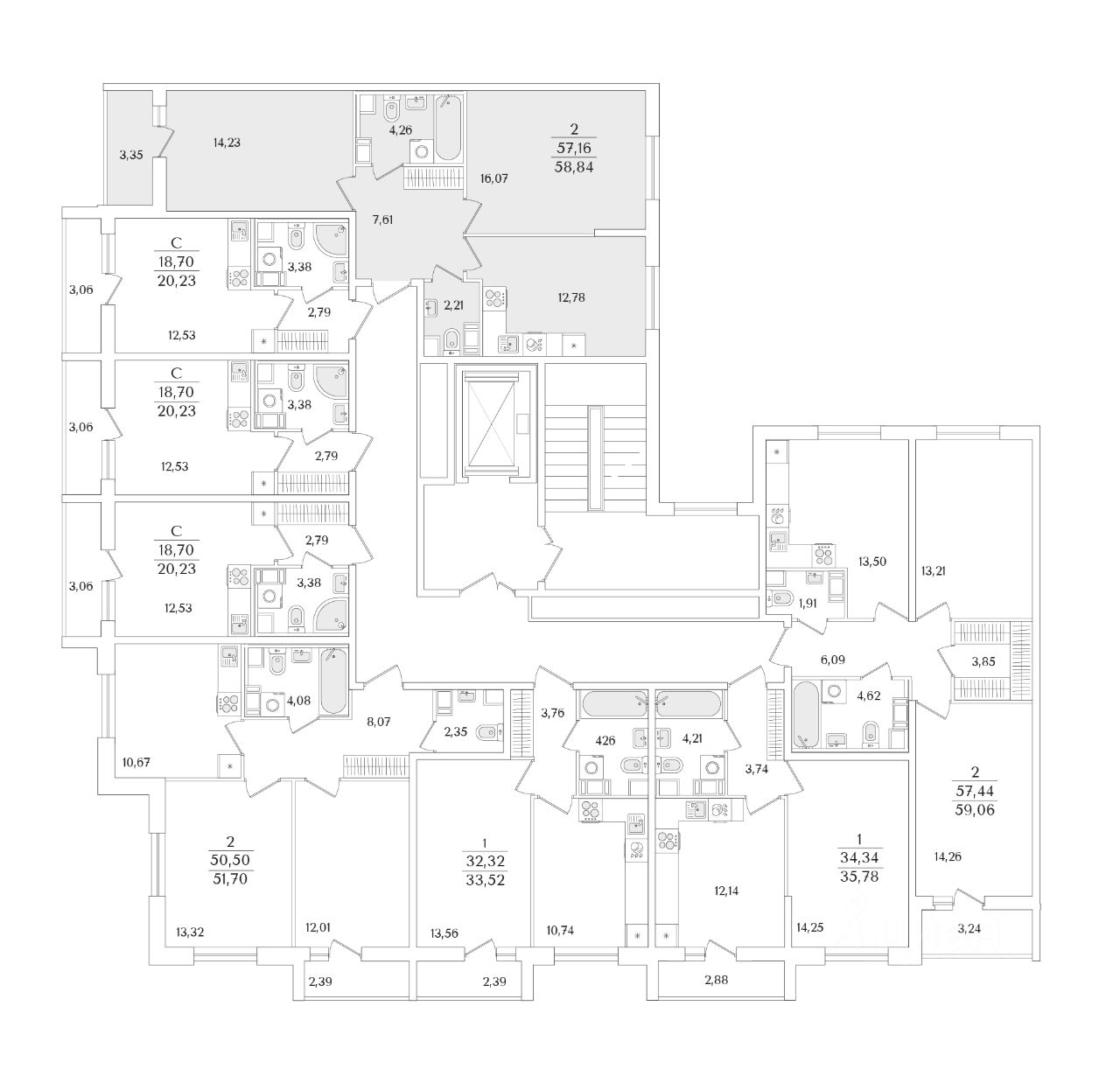 Квартира находится в 9 этажном доме, в Очередь 2, Корпус 2 на 7 этаже. Общая площадь квартиры 58,84 кв.м.