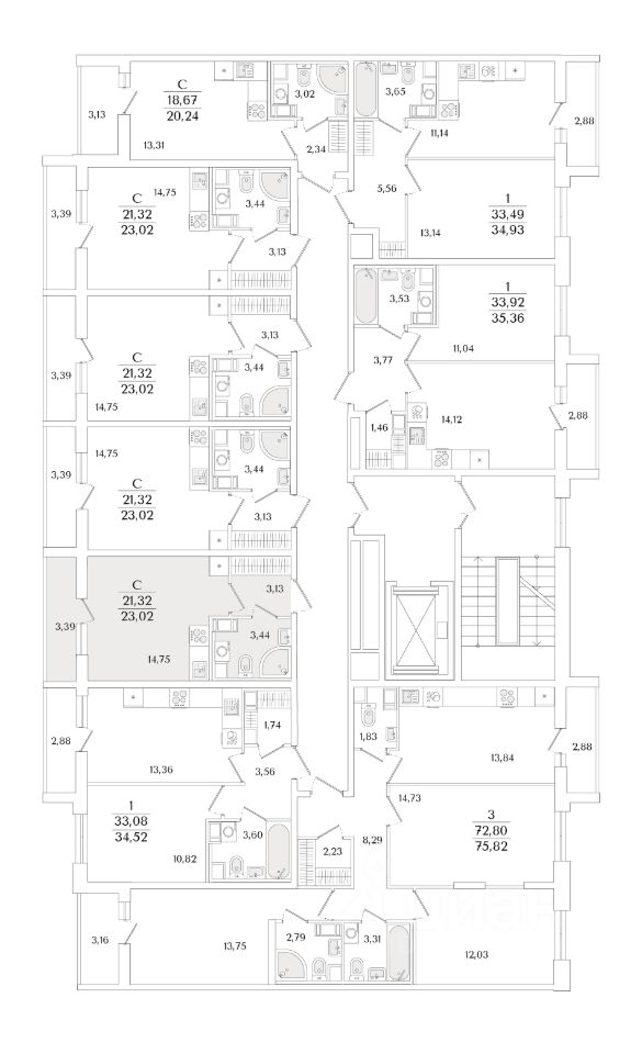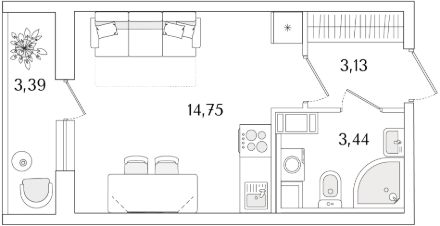 Квартира находится в 9 этажном доме, в Очередь 2, Корпус 2 на 7 этаже. Общая площадь квартиры 23,02 кв.м.