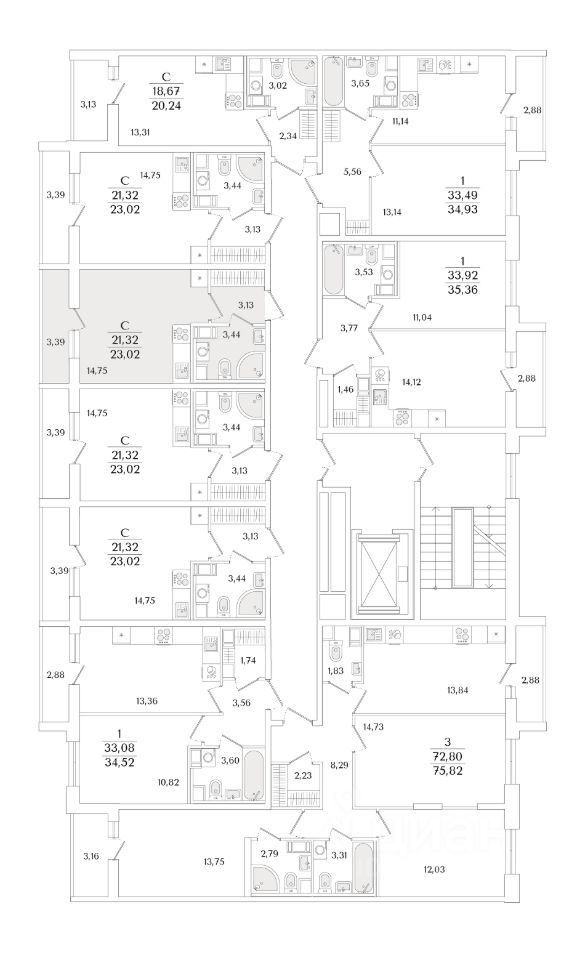 Квартира находится в 9 этажном доме, в Очередь 2, Корпус 2 на 7 этаже. Общая площадь квартиры 23,02 кв.м.
