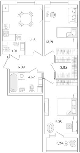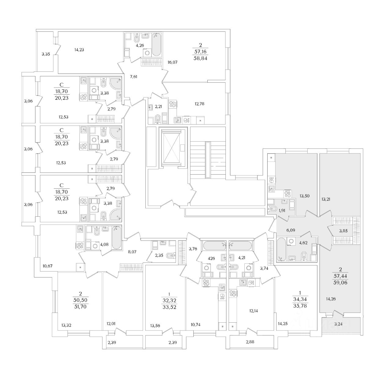Квартира находится в 9 этажном доме, в Очередь 2, Корпус 2 на 8 этаже. Общая площадь квартиры 59,06 кв.м.