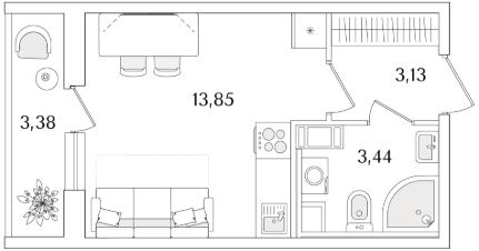 Квартира находится в 9 этажном доме, в Очередь 2, Корпус 2 на 8 этаже. Общая площадь квартиры 22,11 кв.м.