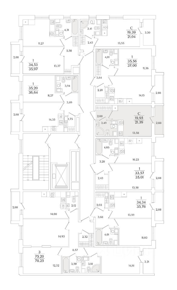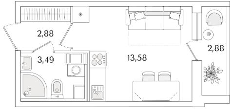 Квартира находится в 9 этажном доме, в Очередь 2, Корпус 2 на 9 этаже. Общая площадь квартиры 21,39 кв.м.