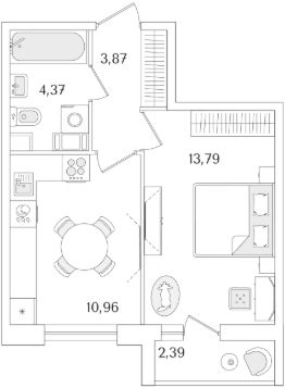 Квартира находится в 9 этажном доме, в Очередь 2, Корпус 2 на 9 этаже. Общая площадь квартиры 34,19 кв.м.