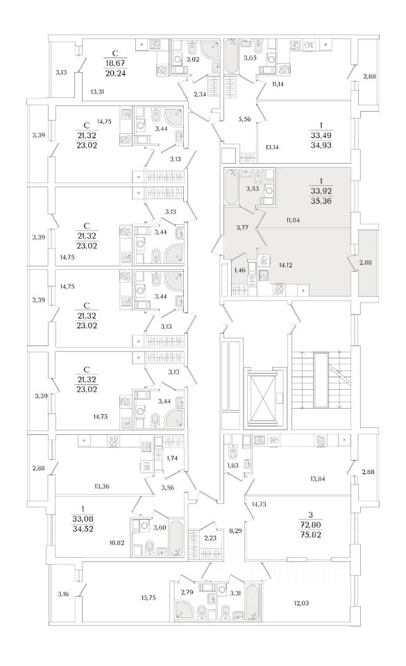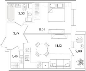 Квартира находится в 9 этажном доме, в Очередь 2, Корпус 2 на 9 этаже. Общая площадь квартиры 35,36 кв.м.