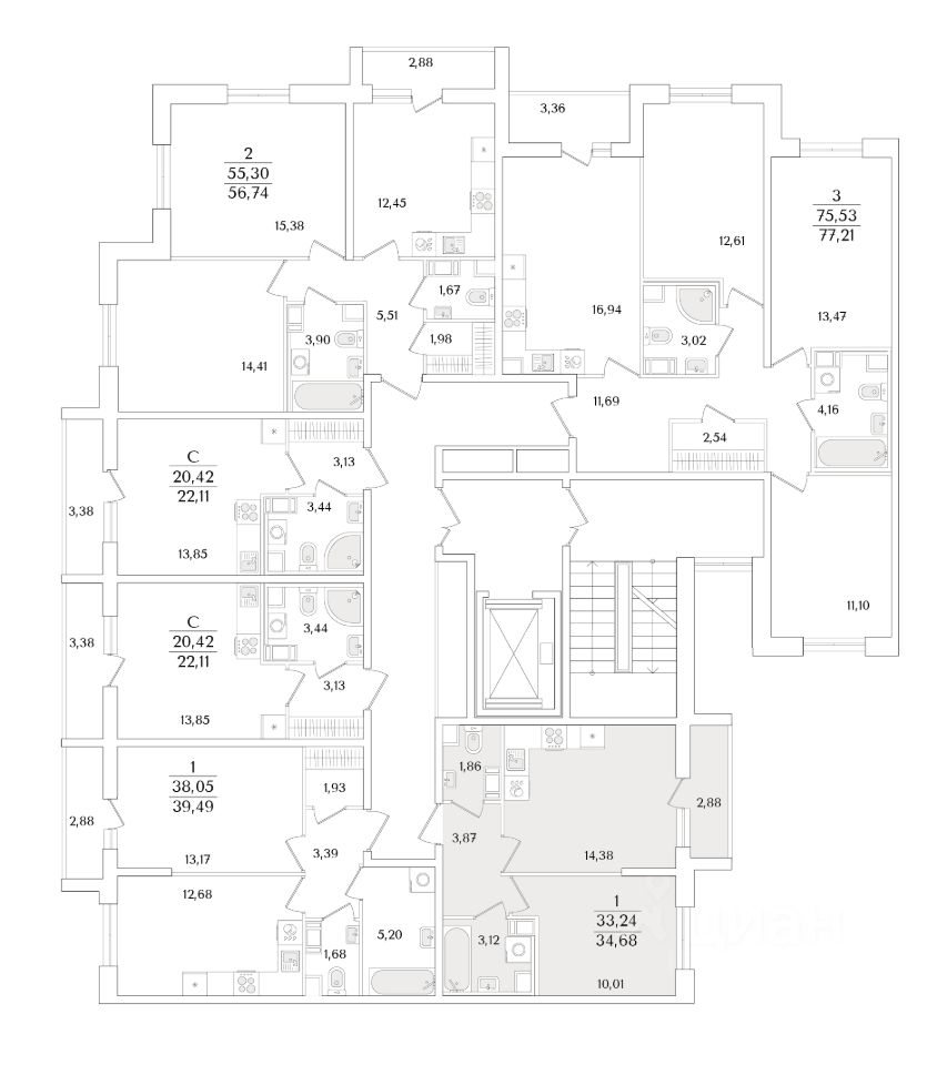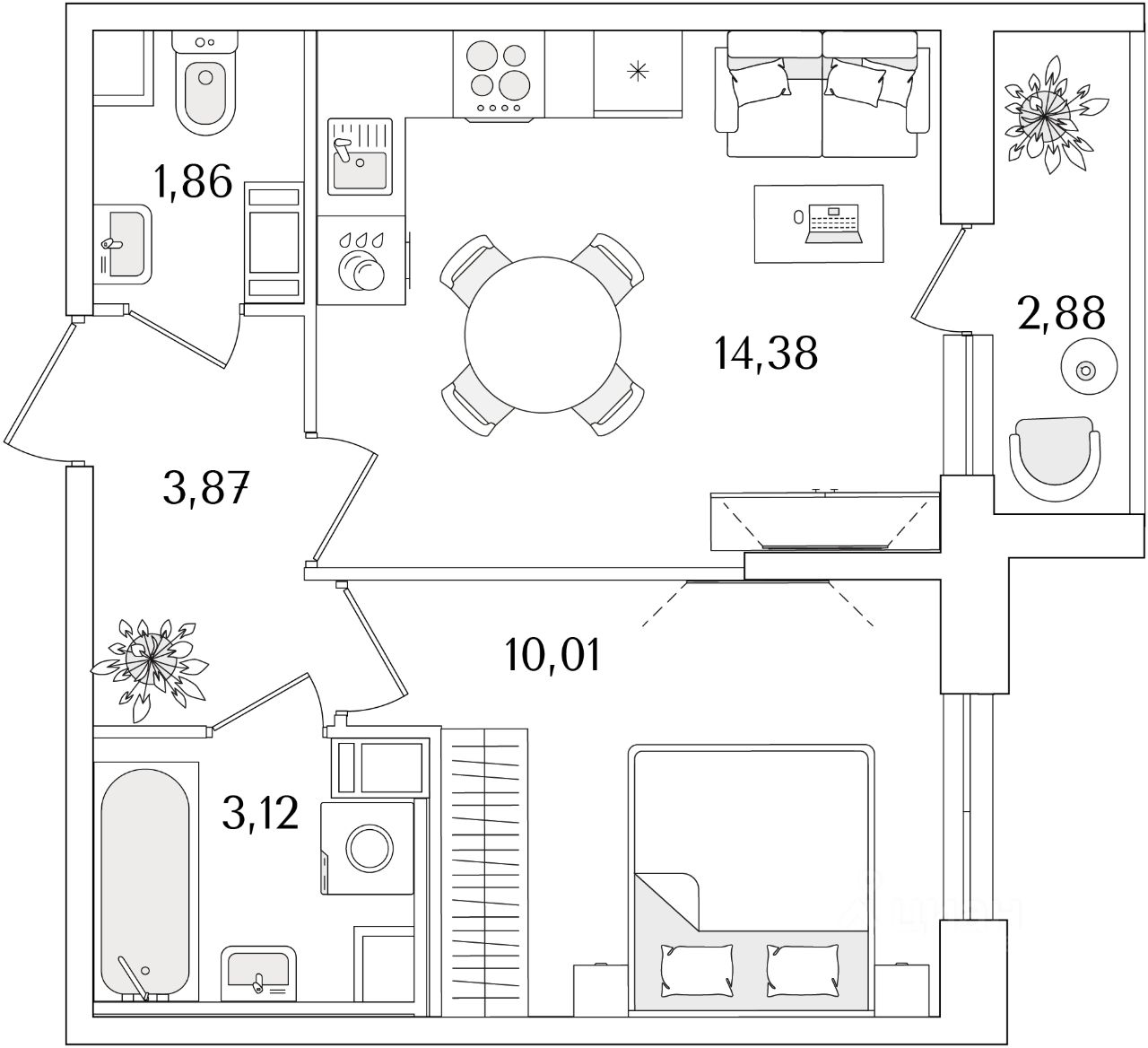 Квартира находится в 9 этажном доме, в Очередь 2, Корпус 2 на 9 этаже. Общая площадь квартиры 34,68 кв.м.