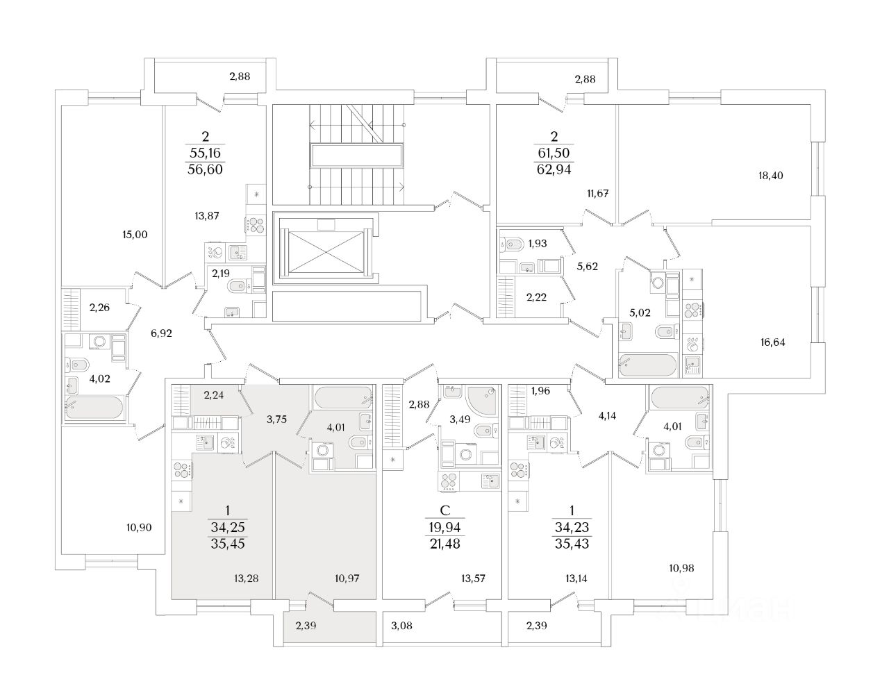 Квартира находится в 9 этажном доме, в Очередь 2, Корпус 2 на 9 этаже. Общая площадь квартиры 35,45 кв.м.