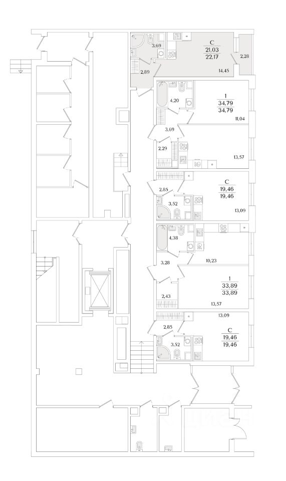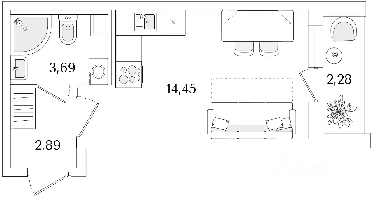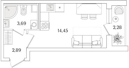 Квартира находится в 9 этажном доме, в Очередь 2, Корпус 1 на 1 этаже. Общая площадь квартиры 22,17 кв.м.