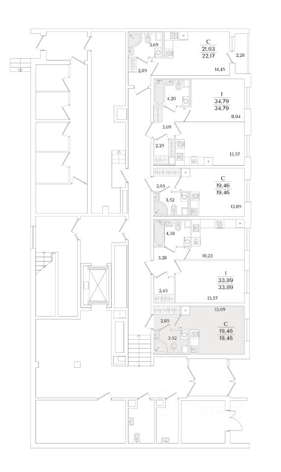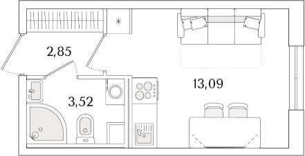 Квартира находится в 9 этажном доме, в Очередь 2, Корпус 1 на 1 этаже. Общая площадь квартиры 19,46 кв.м.