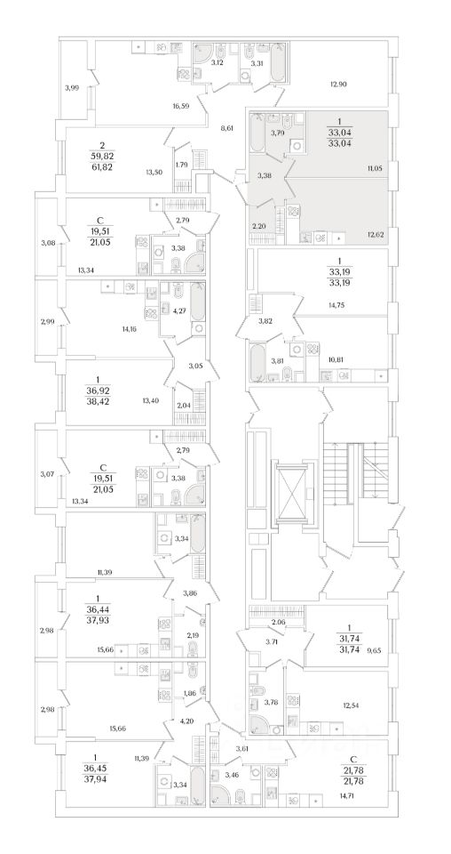 Квартира находится в 9 этажном доме, в Очередь 2, Корпус 1 на 2 этаже. Общая площадь квартиры 33,04 кв.м.