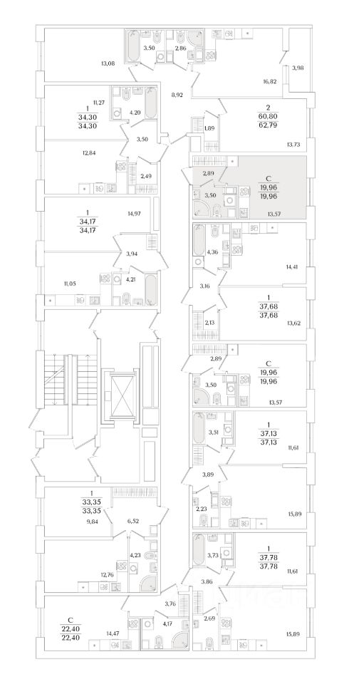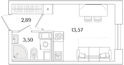 Квартира находится в 9 этажном доме, в Очередь 2, Корпус 1 на 2 этаже. Общая площадь квартиры 19,96 кв.м.