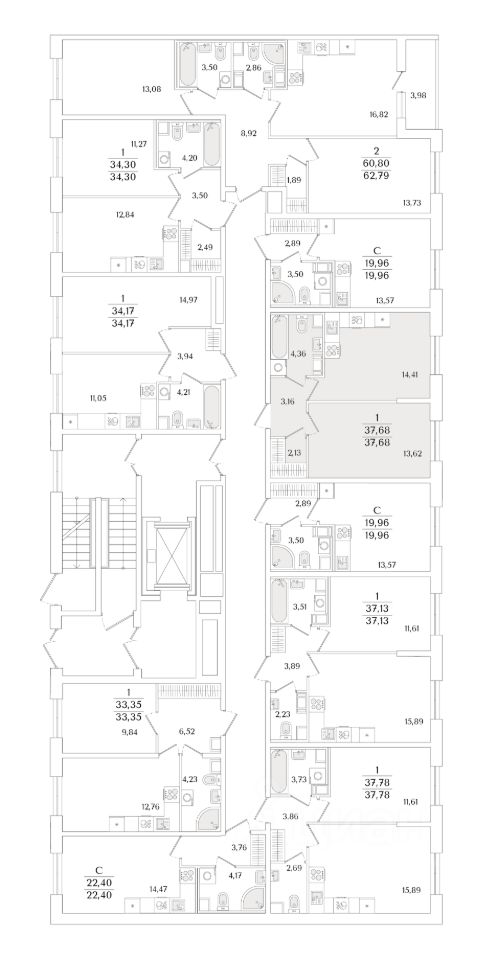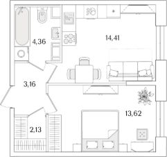 Квартира находится в 9 этажном доме, в Очередь 2, Корпус 1 на 2 этаже. Общая площадь квартиры 37,68 кв.м.