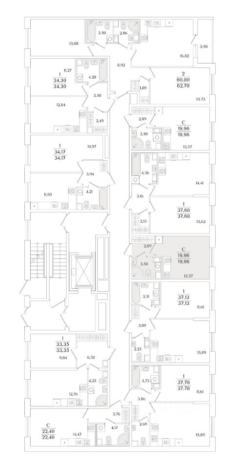 19,96 м²