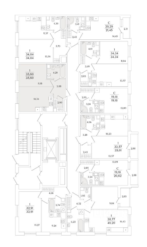 Квартира находится в 9 этажном доме, в Очередь 2, Корпус 1 на 2 этаже. Общая площадь квартиры 35,60 кв.м.