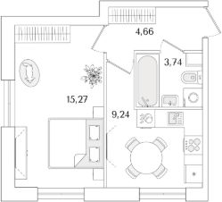 Квартира находится в 9 этажном доме, в Очередь 2, Корпус 1 на 2 этаже. Общая площадь квартиры 32,91 кв.м.