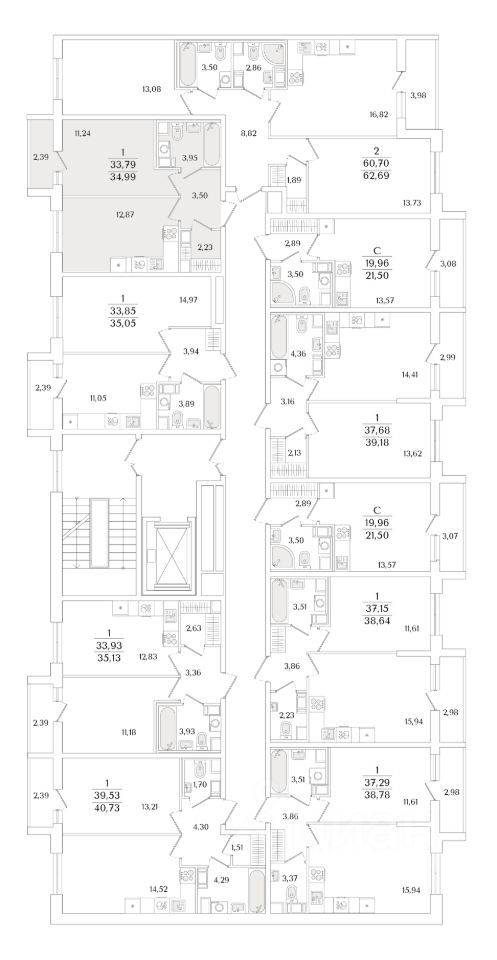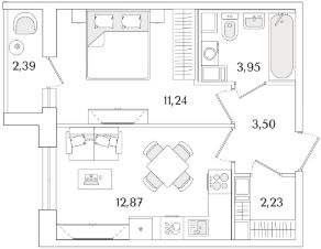Квартира находится в 9 этажном доме, в Очередь 2, Корпус 1 на 3 этаже. Общая площадь квартиры 34,99 кв.м.
