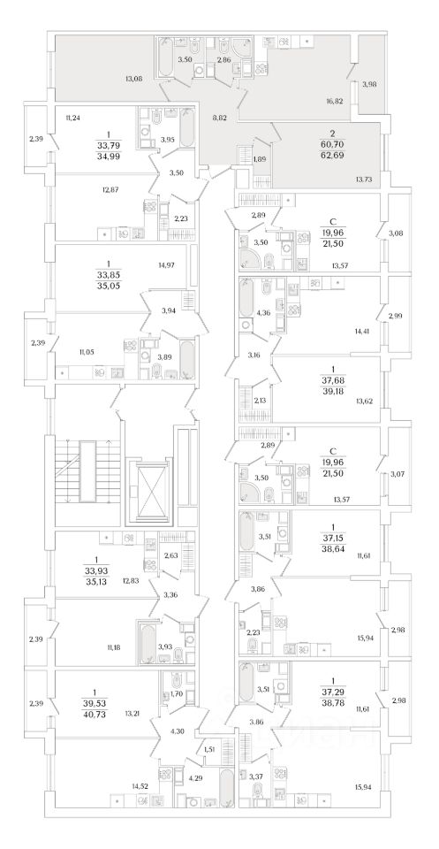 Квартира находится в 9 этажном доме, в Очередь 2, Корпус 1 на 3 этаже. Общая площадь квартиры 62,69 кв.м.