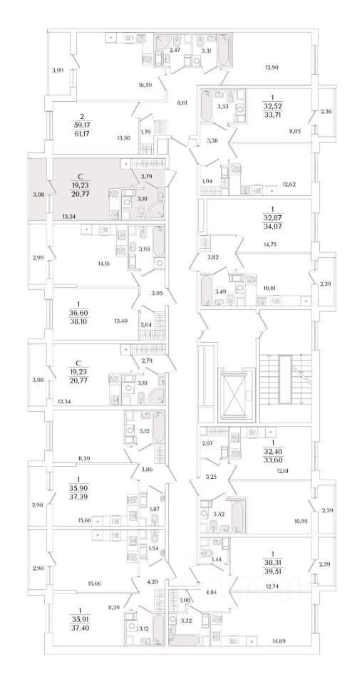 Квартира находится в 9 этажном доме, в Очередь 2, Корпус 1 на 6 этаже. Общая площадь квартиры 20,77 кв.м.