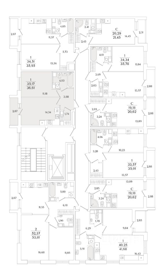 Квартира находится в 9 этажном доме, в Очередь 2, Корпус 1 на 7 этаже. Общая площадь квартиры 36,61 кв.м.