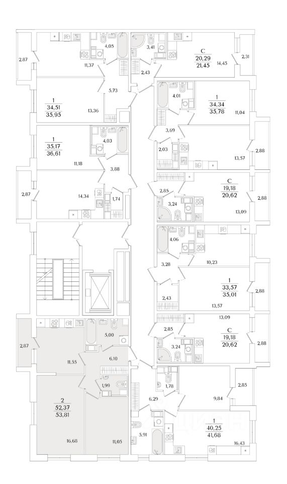 Квартира находится в 9 этажном доме, в Очередь 2, Корпус 1 на 7 этаже. Общая площадь квартиры 53,81 кв.м.