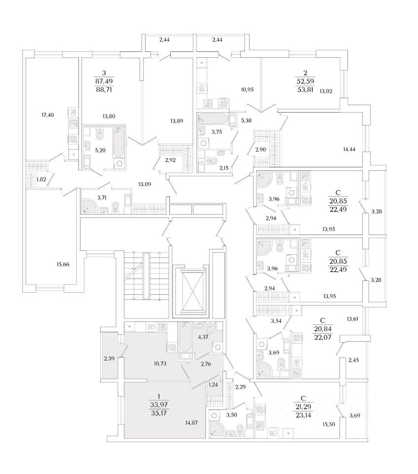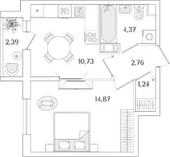 Квартира находится в 9 этажном доме, в Очередь 2, Корпус 1 на 8 этаже. Общая площадь квартиры 35,17 кв.м.
