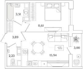 Квартира находится в 9 этажном доме, в Очередь 2, Корпус 1 на 8 этаже. Общая площадь квартиры 38,68 кв.м.