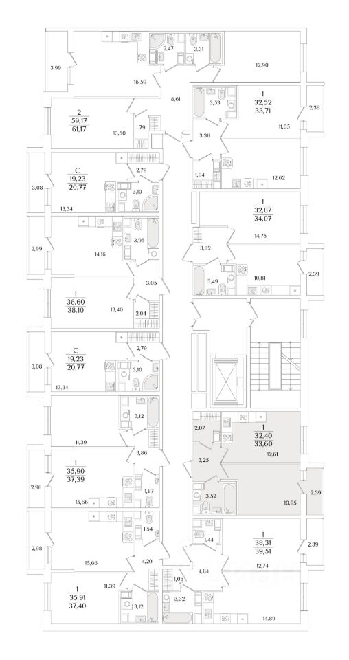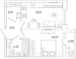 Квартира находится в 9 этажном доме, в Очередь 2, Корпус 1 на 9 этаже. Общая площадь квартиры 33,60 кв.м.