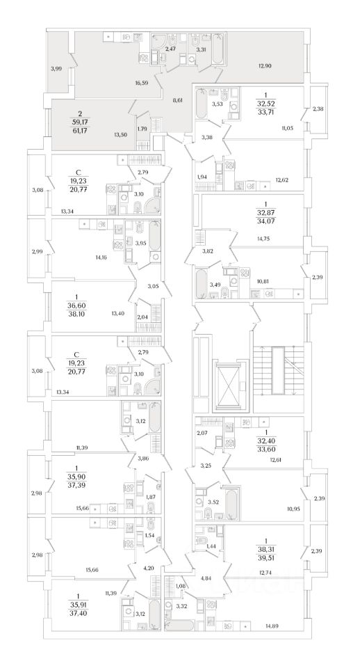 Квартира находится в 9 этажном доме, в Очередь 2, Корпус 1 на 9 этаже. Общая площадь квартиры 61,17 кв.м.