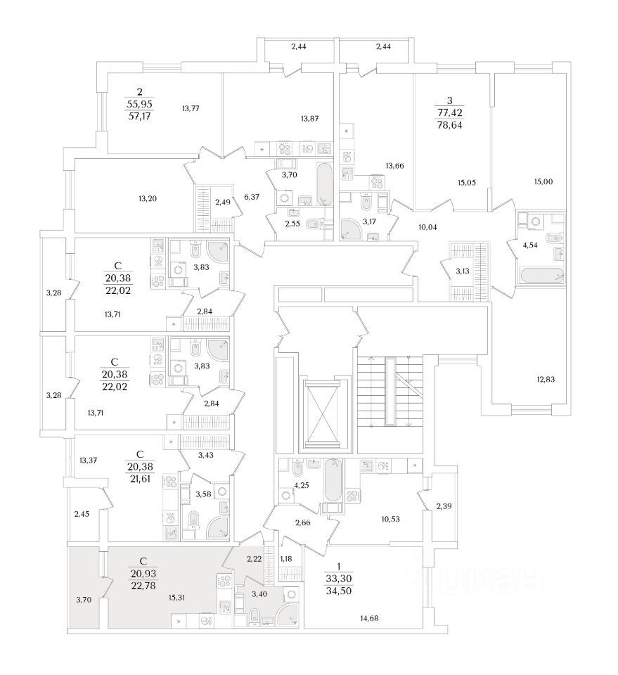 Квартира находится в 9 этажном доме, в Очередь 2, Корпус 1 на 9 этаже. Общая площадь квартиры 22,78 кв.м.