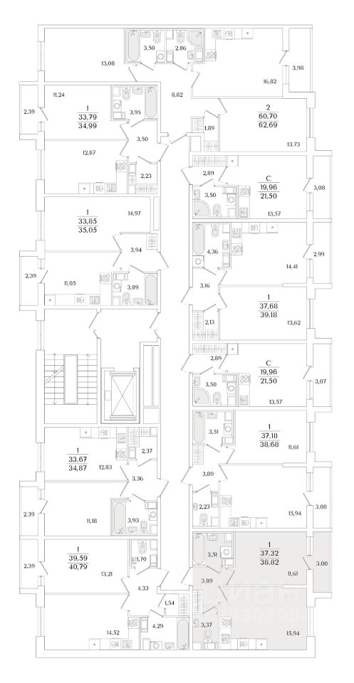 Квартира находится в 9 этажном доме, в Очередь 2, Корпус 1 на 9 этаже. Общая площадь квартиры 38,82 кв.м.