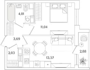 Квартира находится в 9 этажном доме, в Очередь 2, Корпус 1 на 9 этаже. Общая площадь квартиры 35,78 кв.м.