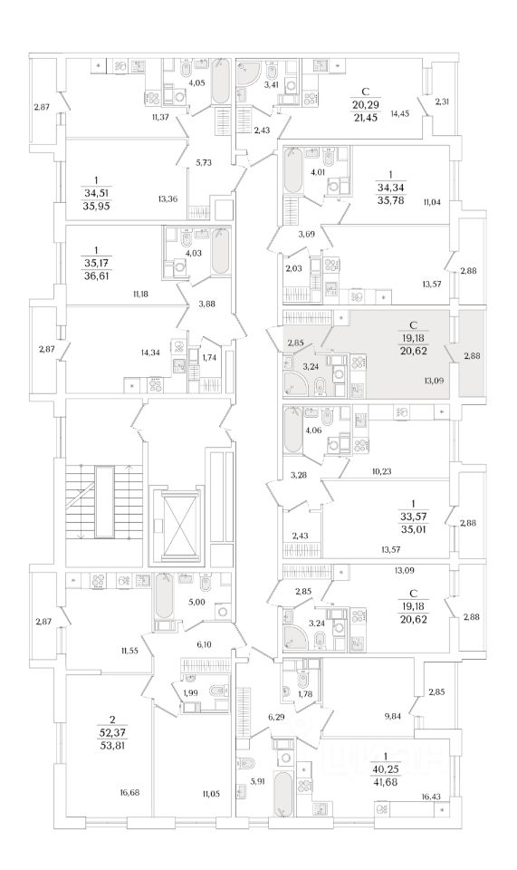 Квартира находится в 9 этажном доме, в Очередь 2, Корпус 1 на 9 этаже. Общая площадь квартиры 20,62 кв.м.
