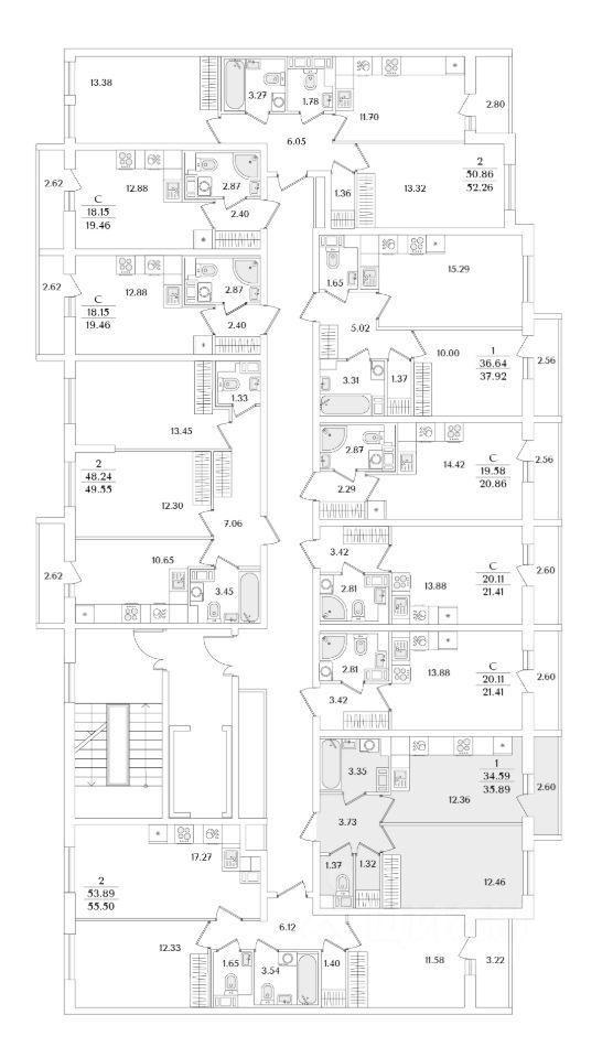 Квартира находится в 9 этажном доме, в Очередь 1, Корпус 1 на 4 этаже. Общая площадь квартиры 35,89 кв.м.