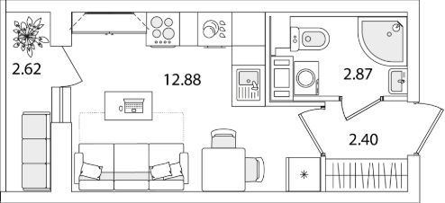 Квартира находится в 9 этажном доме, в Очередь 1, Корпус 1 на 7 этаже. Общая площадь квартиры 19,46 кв.м.