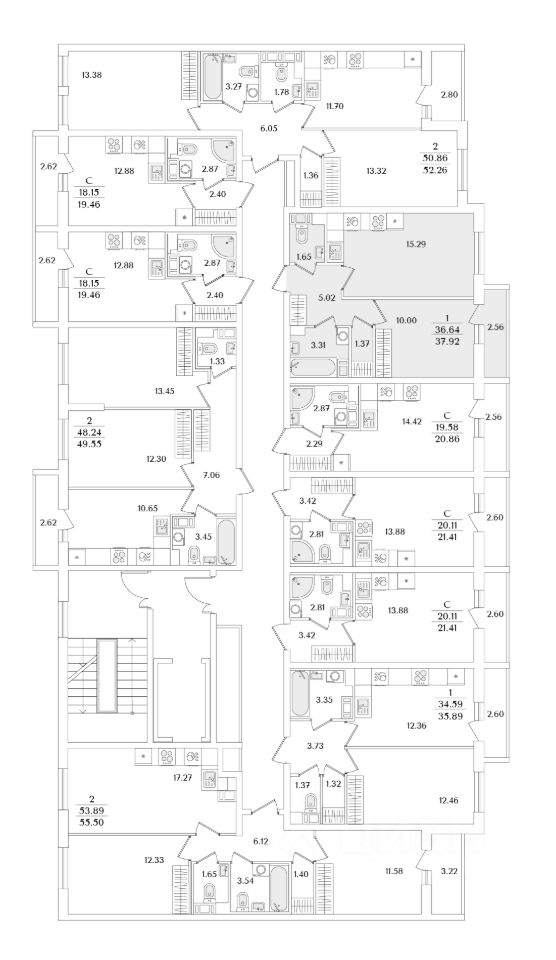 Квартира находится в 9 этажном доме, в Очередь 1, Корпус 1 на 8 этаже. Общая площадь квартиры 37,92 кв.м.