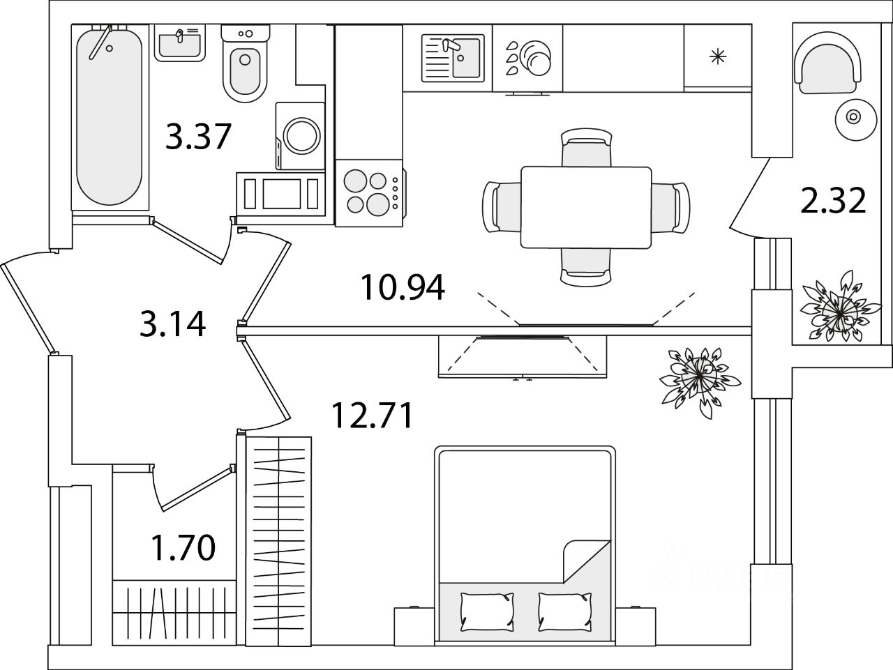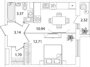 Квартира находится в 9 этажном доме, в Очередь 1, Корпус 1 на 3 этаже. Общая площадь квартиры 33,02 кв.м.