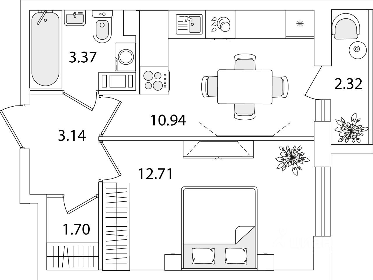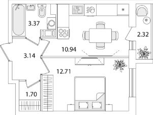Квартира находится в 9 этажном доме, в Очередь 1, Корпус 1 на 7 этаже. Общая площадь квартиры 33,02 кв.м.