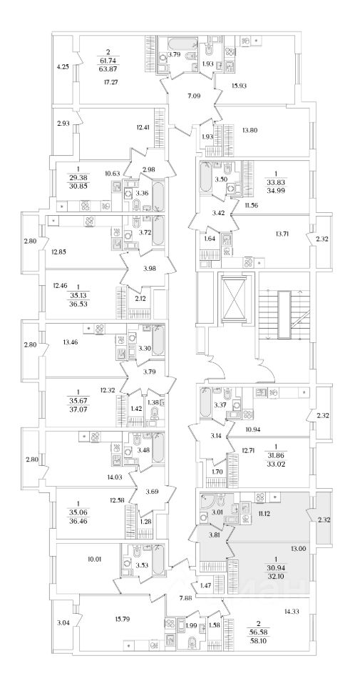 Квартира находится в 9 этажном доме, в Очередь 1, Корпус 1 на 9 этаже. Общая площадь квартиры 32,10 кв.м.