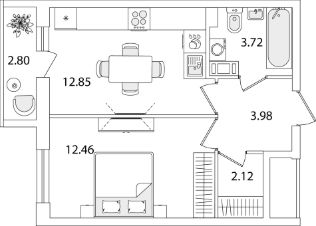 Квартира находится в 9 этажном доме, в Очередь 1, Корпус 1 на 9 этаже. Общая площадь квартиры 36,53 кв.м.