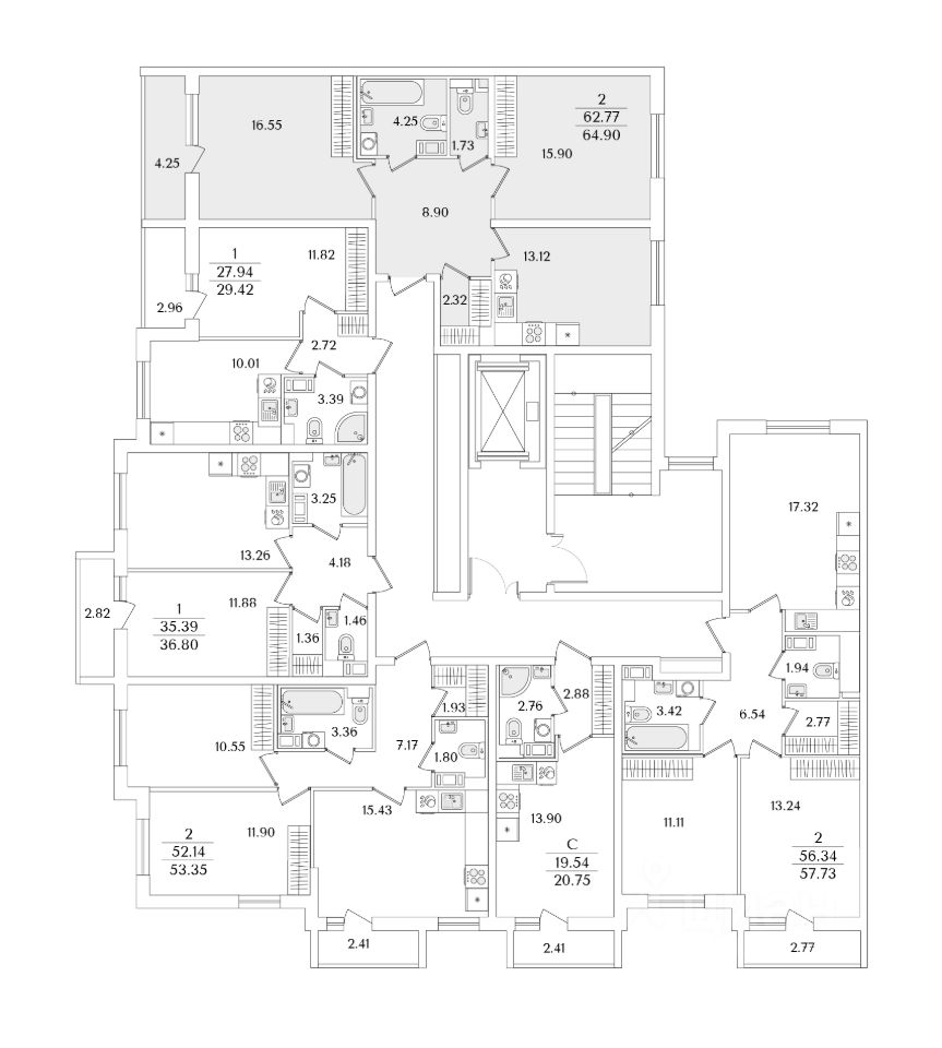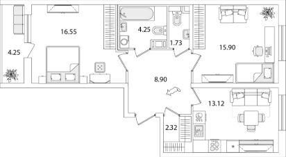 Квартира находится в 9 этажном доме, в Очередь 1, Корпус 1 на 3 этаже. Общая площадь квартиры 64,90 кв.м.