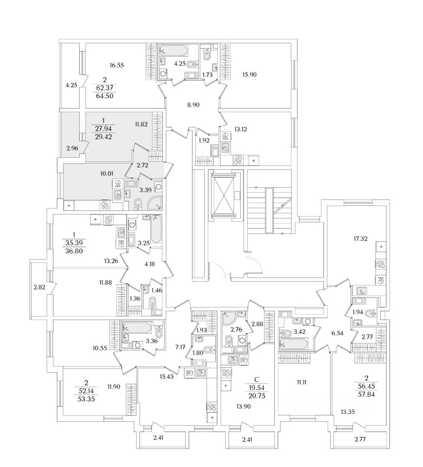 Квартира находится в 9 этажном доме, в Очередь 1, Корпус 1 на 7 этаже. Общая площадь квартиры 29,42 кв.м.