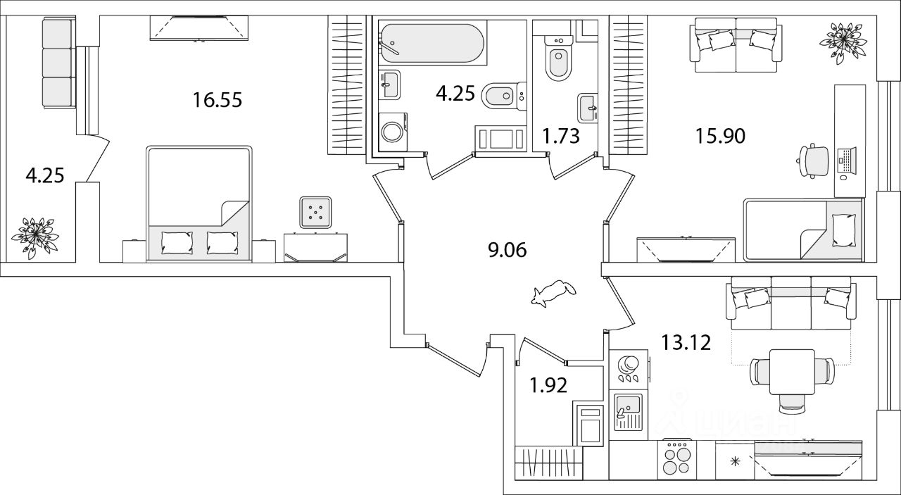 Квартира находится в 9 этажном доме, в Очередь 1, Корпус 1 на 7 этаже. Общая площадь квартиры 64,50 кв.м.