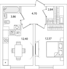 Квартира находится в 9 этажном доме, в Очередь 1, Корпус 1 на 1 этаже. Общая площадь квартиры 36,37 кв.м.