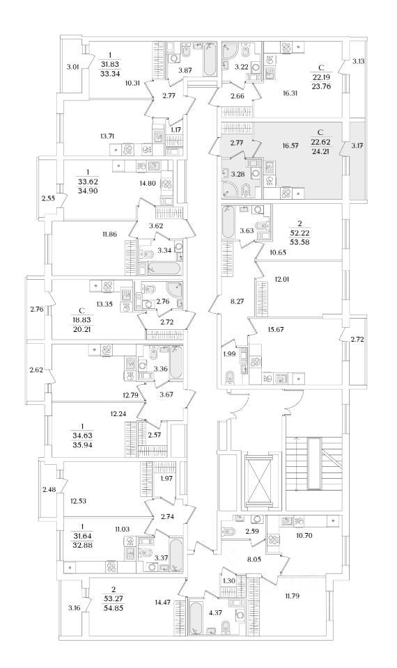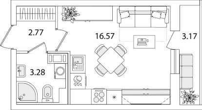 Квартира находится в 9 этажном доме, в Очередь 1, Корпус 1 на 3 этаже. Общая площадь квартиры 24,21 кв.м.