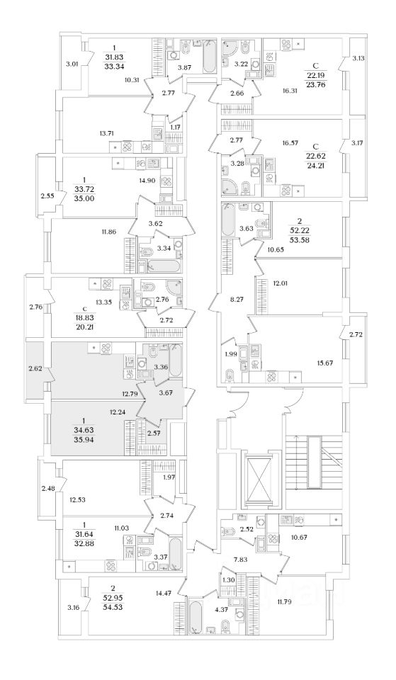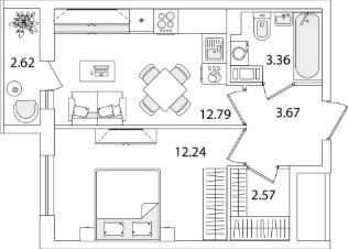 Квартира находится в 9 этажном доме, в Очередь 1, Корпус 1 на 5 этаже. Общая площадь квартиры 35,94 кв.м.