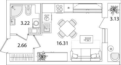 Квартира находится в 9 этажном доме, в Очередь 1, Корпус 1 на 6 этаже. Общая площадь квартиры 23,76 кв.м.