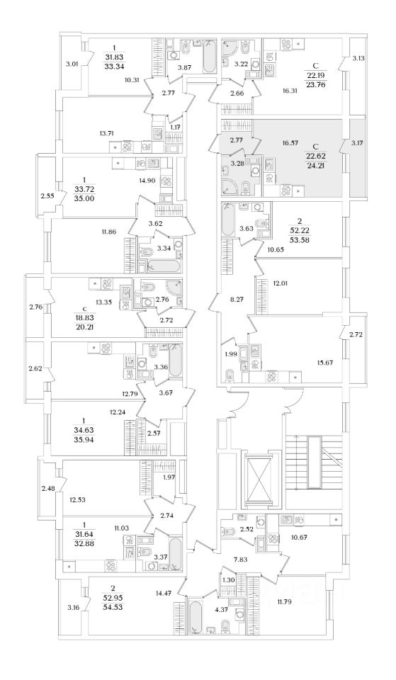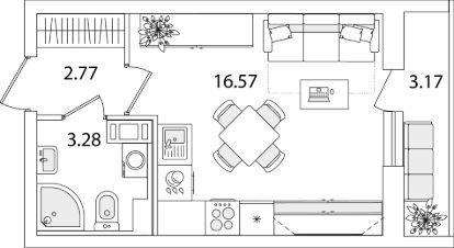 Квартира находится в 9 этажном доме, в Очередь 1, Корпус 1 на 7 этаже. Общая площадь квартиры 24,21 кв.м.