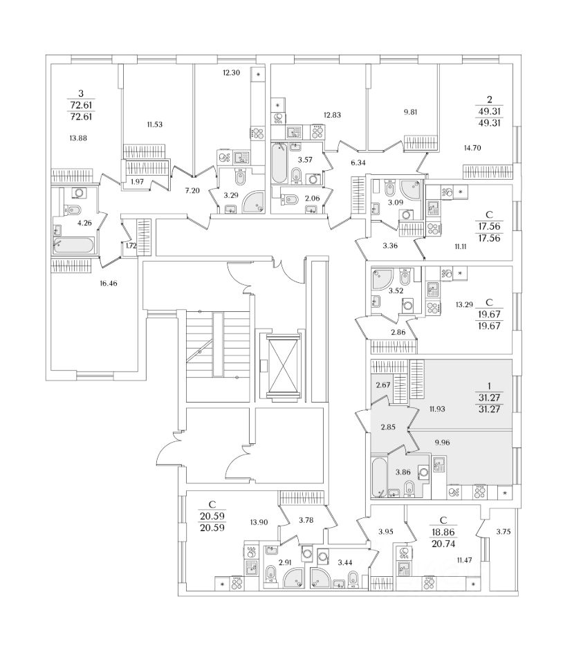 Квартира находится в 9 этажном доме, в Очередь 1, Корпус 1 на 2 этаже. Общая площадь квартиры 31,27 кв.м.
